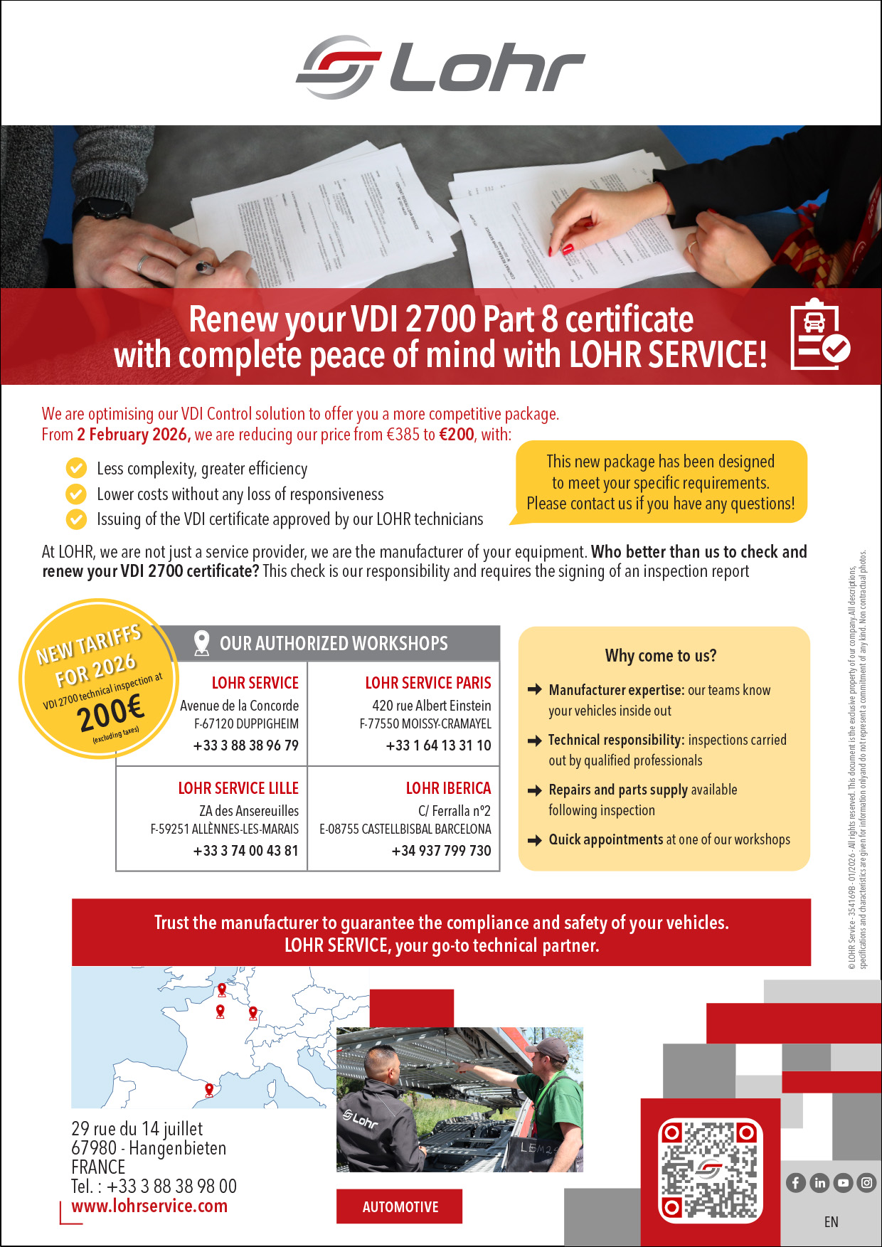 For over 60 years the Lohr group has continually adapted to the specific needs of its customers and to automotive logistic evolutions. With a strong mind-set firmly directed towards innovation and constant customer feedback integration, the loading capacity, driver’s friendly use and safety, reliability of the products have never stopped progressing and found themselves into our current range of products such as Eurolohr, Performer, Maxilohr, among many other. In addition the company Lohr Service has been set up in 1999 as a specific tool totally dedicated to customer assistance for the various group activities. Our job is to help all users of our products by technical support, spare parts supply, network workshop availability and in general terms propose practical solutions in order to optimise global life cost of our vehicles.